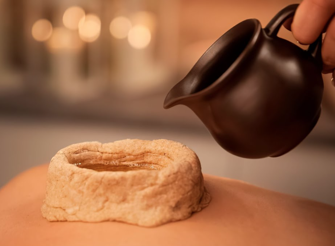 This treatment consists of a handmade dough ring, filled with hot oil placed on localized areas of the body to elevate joint and muscle pain, stiffness, and swelling. This treatment includes a hot herbal foot soak.